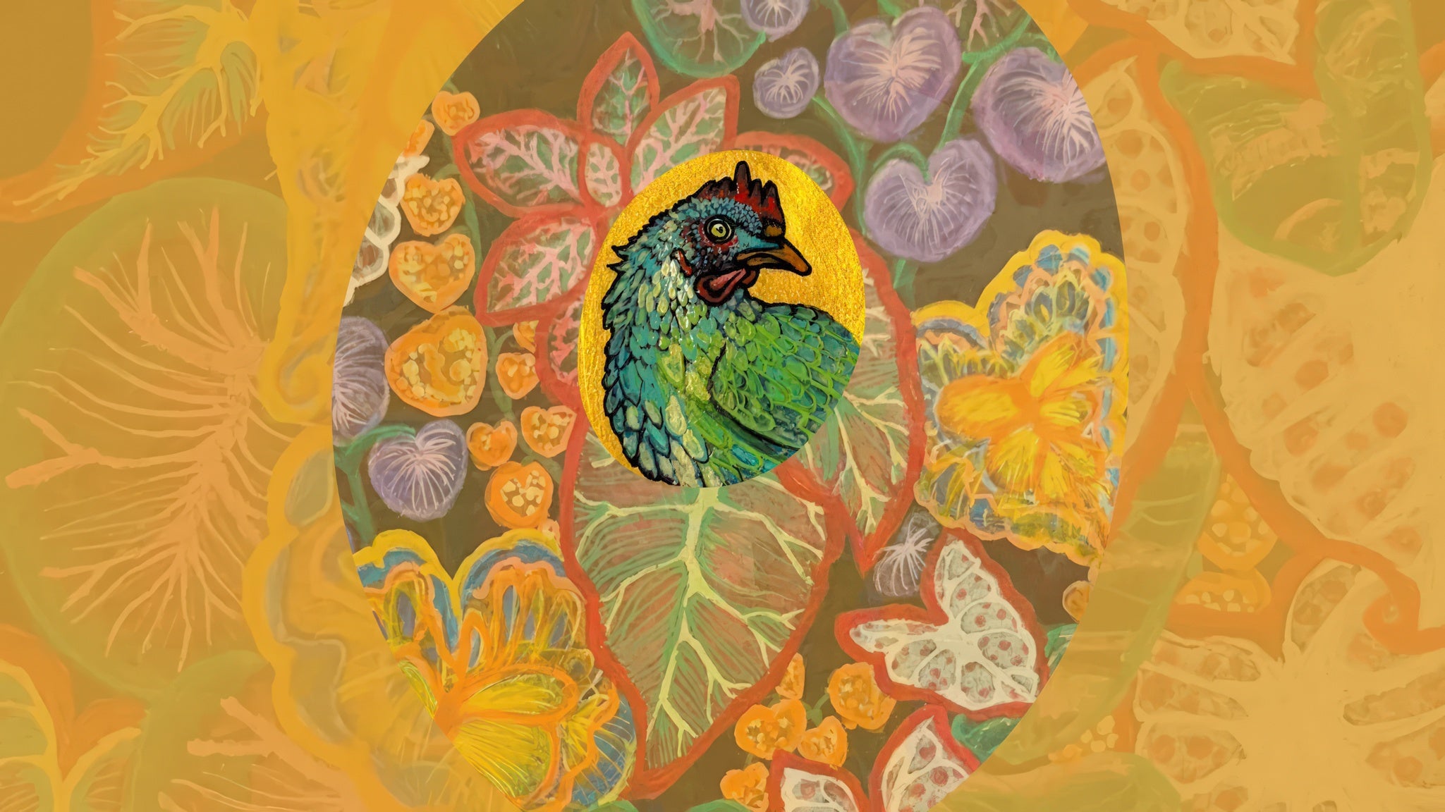 A surreal artistic habitat where handmade paper plants, mythical creatures, and unique fantasy gifts emerge on the path.
